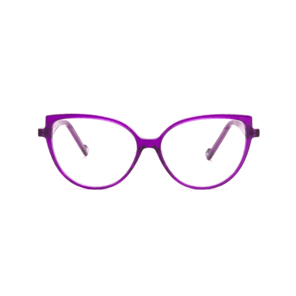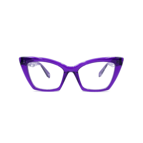 Las gafas ópticas Kelinse KEL3934 combinan una silueta ojo de gato con un acabado morado transparente sofisticado, logrando una estética estilizada y moderna.