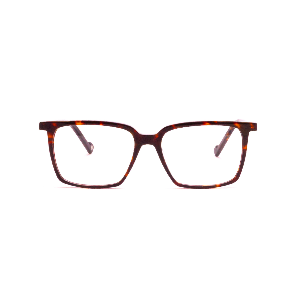 Las gafas ópticas Kelinse KEL4002 tienen un diseño cuadrado de líneas definidas y su acabado carey oscuro elegante, logrando una estética moderna y atemporal.