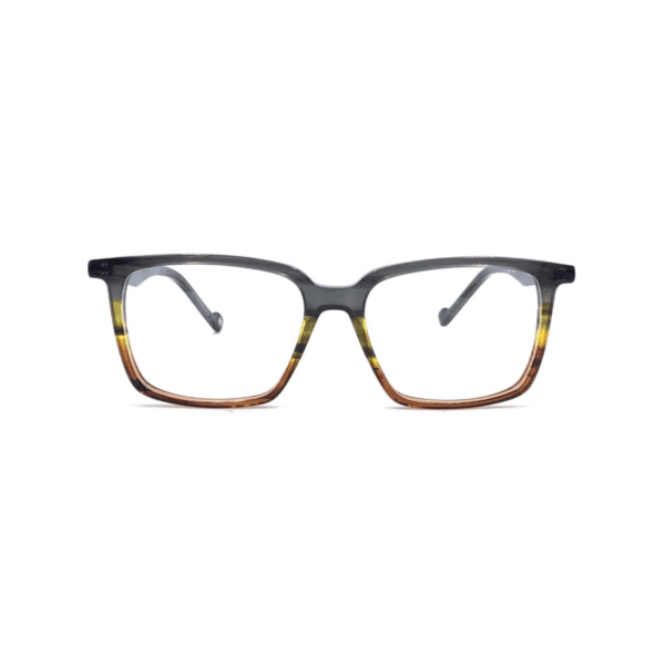 Las gafas ópticas Kelinse KEL4078K tienen un diseño cuadrado de líneas definidas y su acabado gris a amarillo elegante, logrando una estética moderna y atemporal.