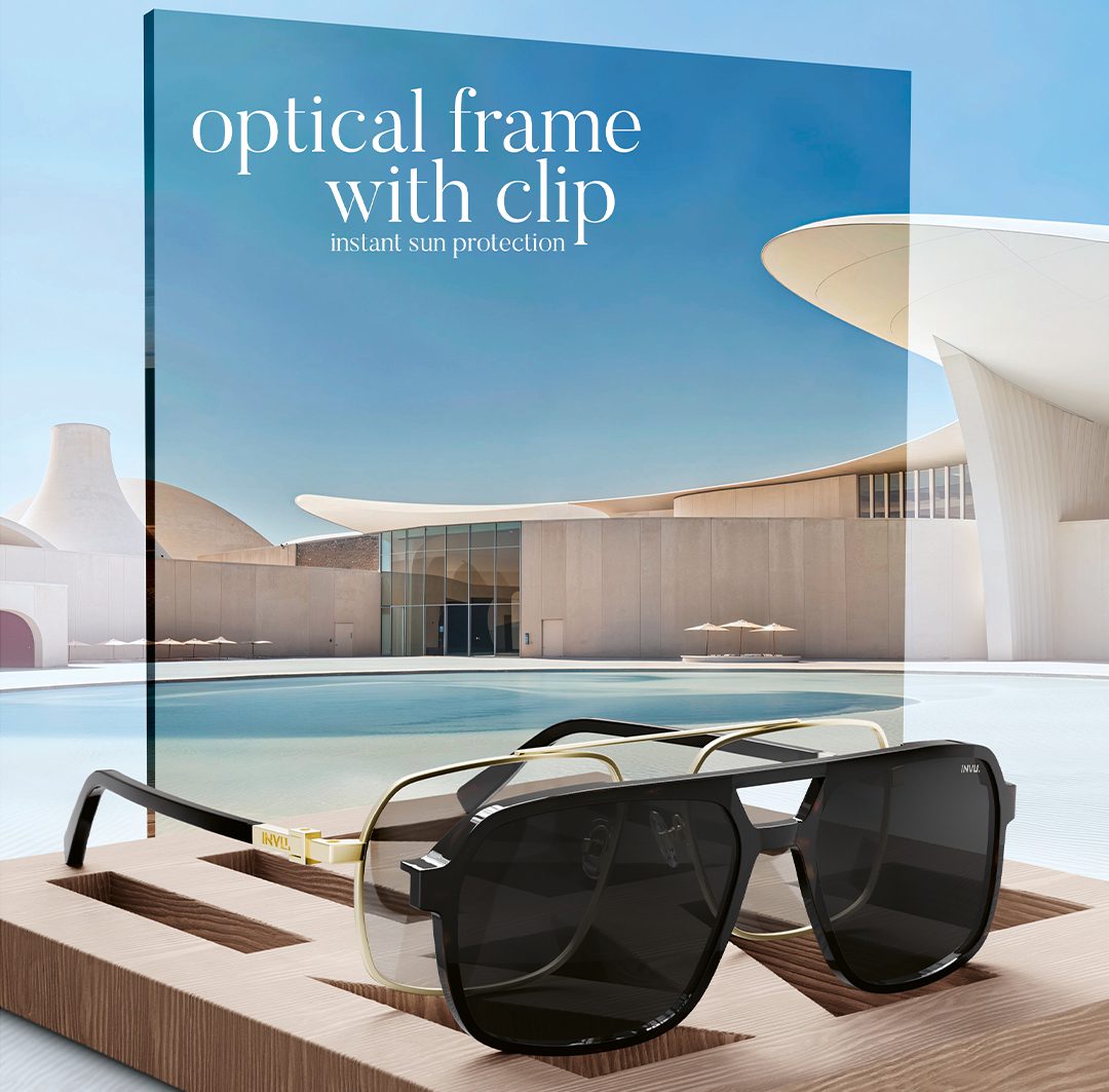 The engineering behind this solution is remarkable: the clips are designed with millimeter precision to integrate into the frame, achieving a silhouette that is perceived as a complete sunglass, not as an improvised accessory. This smart solution allows users of prescription INVU glasses to make an instant transition from clear vision to sun protection without the need for a second pair of glasses. The clip, by incorporating the nine-layer Ultra Polarized lens technology, ensures that the user enjoys maximum UV400 protection and glare elimination.