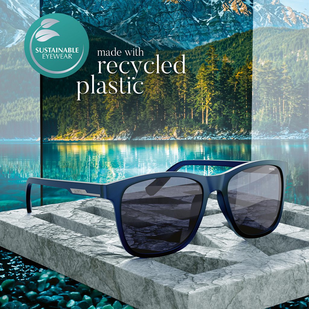 Addressing the growing ecological awareness of the end consumer, INVU has launched its Sustainable collection. These sunglasses combine the excellence of ultra-polarized lenses with frames made from recycled plastic, such as Tritan Renew. This innovative material reuses PET bottles, transforming them into high-quality sunglass frames. The ecological commitment is integral, extending to the accessories: both the case and the cleaning cloth are made with 100% recycled materials, offering the optician a complete and original ecological value proposition.