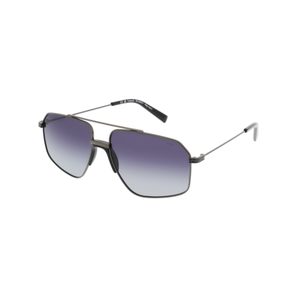 Su montura metálica en gris plomo/azul oscuro combina resistencia y ligereza, mientras que las lentes gris sólido aportan una estética elegante y una visión confortable en condiciones de alta luminosidad.