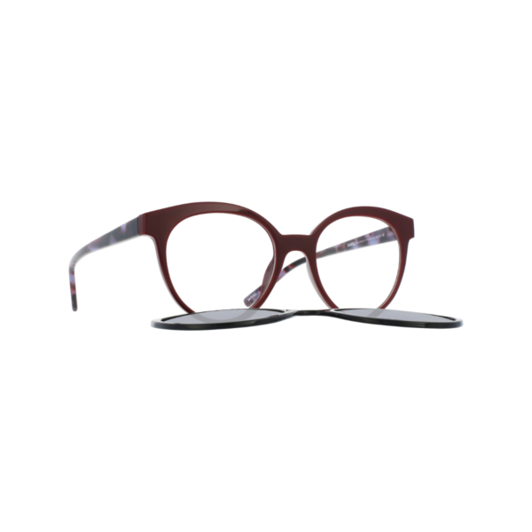 INVU IM42405B es una montura en estilo ojo de gato, con una combinación de borgoña y carey que aporta sofisticación y calidez.