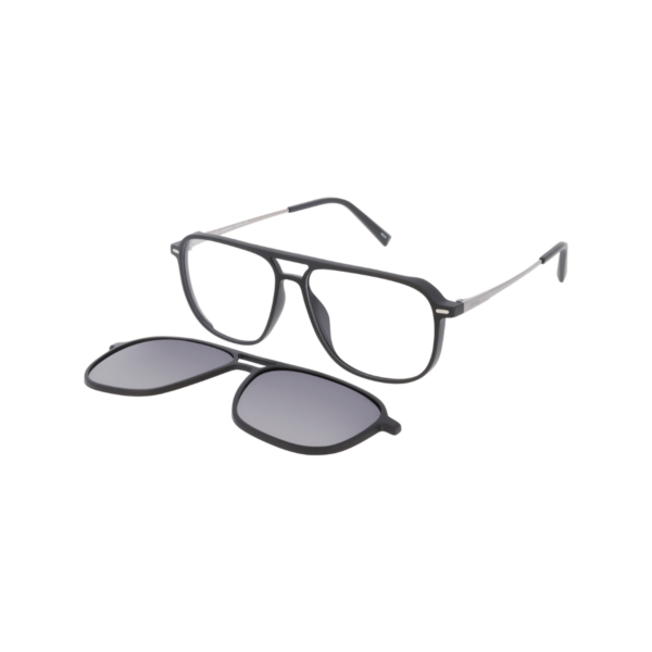 Montura óptica que destaca por su combinación estética entre lo técnico y lo urbano. El acabado negro mate aporta elegancia discreta, mientras que los acentos en gris plomo añaden un toque moderno y profesional. Con su tamaño amplio y diseño estructurado, es una montura pensada para usuarios que buscan presencia, comodidad y un estilo masculino contemporáneo.