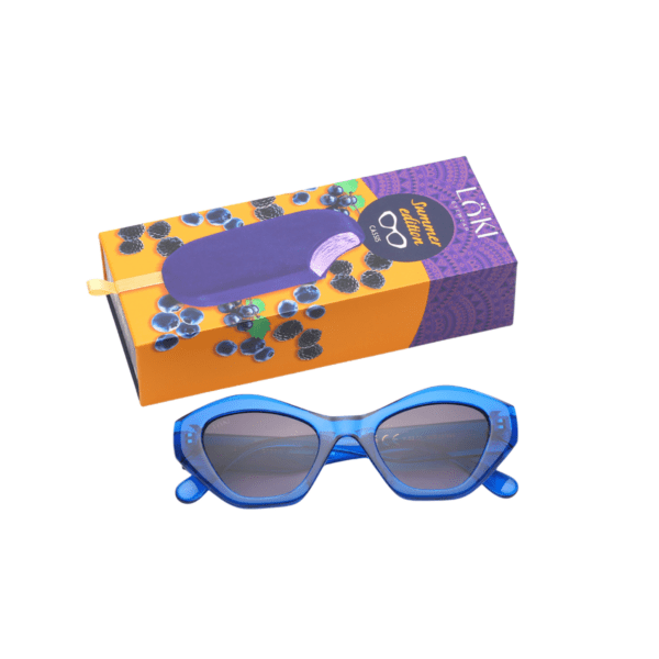 Gafas de sol femeninas Löki KS203 Montura azul - blue, ligera y resistente en Injected Plastic, con forma ojo de gato y lentes negras. Un diseño clásico y versátil de la colección Cassis, ideal para uso diario.