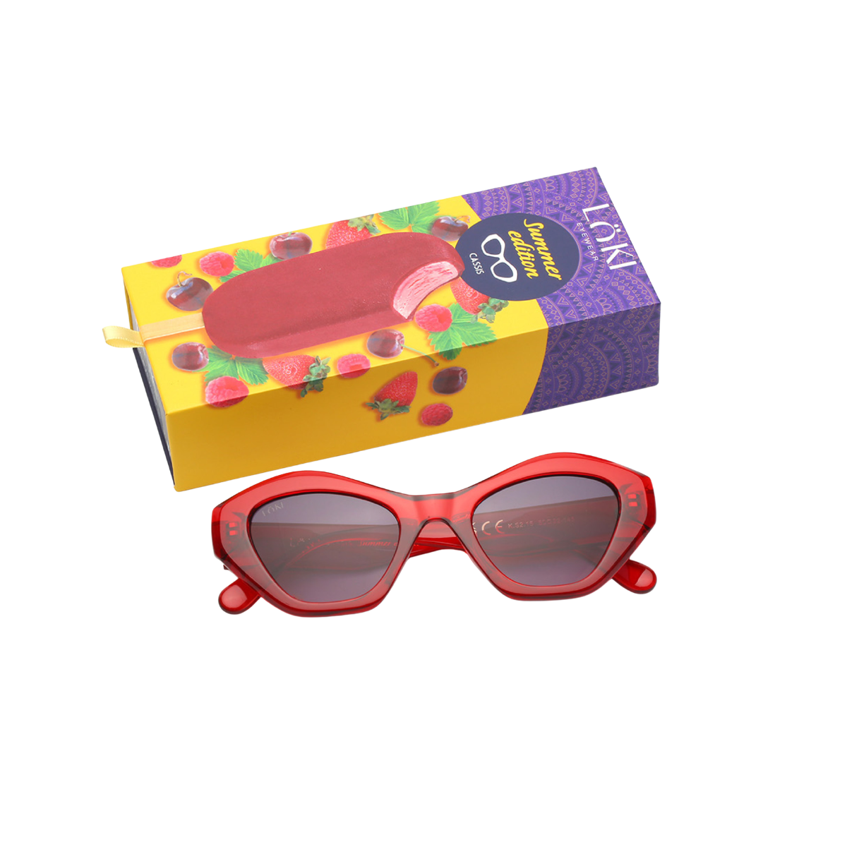 Gafas de sol femeninas Löki KS2145 Montura rojo - red, ligera y resistente en Injected Plastic, con forma ojo de gato y lentes negras. Un diseño clásico y versátil de la colección Cassis, ideal para uso diario.