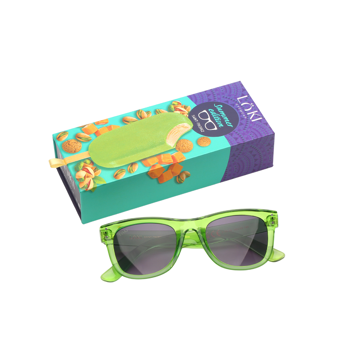 Gafas de sol unisex Löki KS525. Montura verde - green, ligera y resistente en Injected Plastic, con forma cuadrada y lentes negras. Un diseño clásico y versátil de la colección Saint Tropez, ideal para uso diario.