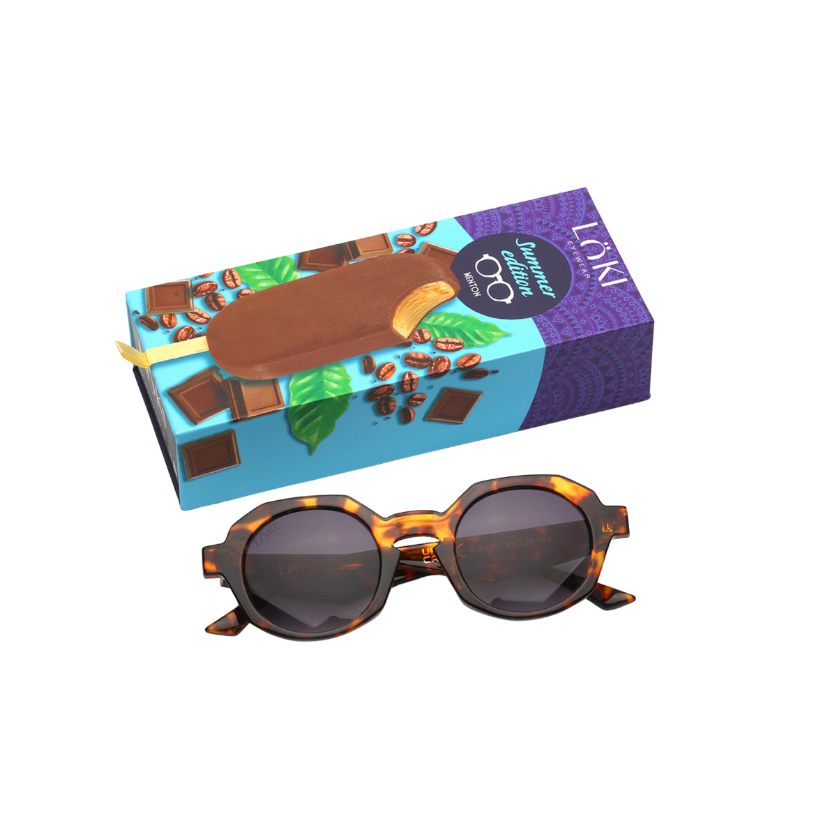 Gafas de sol Löki KI01SE. Montura regalíz - liquirizia summer edition ligera y resistente en Injected Plastic, con forma nan y lentes transparentes. Un diseño atemporal y práctico de la colección Framura, ideal para uso diario.