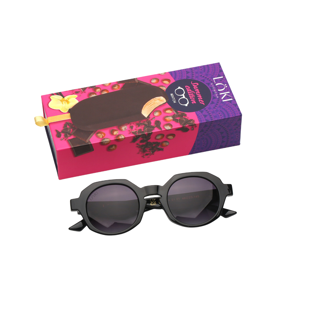 Gafas de sol femeninas Löki KS101. Montura negro - black, ligera y resistente en Injected Plastic, con forma redonda y lentes negras. Un diseño atemporal y práctico de la colección Menton, ideal para uso diario.