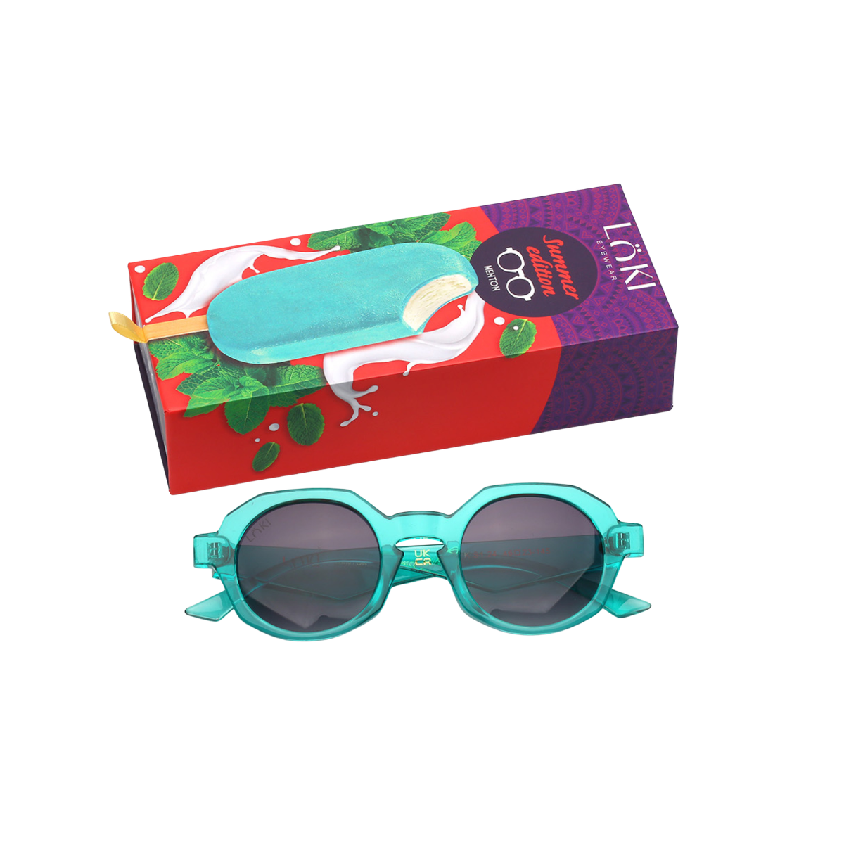 Gafas de sol unisex Löki KICM1SE. Montura verde oscuro - aftereight summer edition ligera y resistente en Injected Plastic, con forma nan y lentes transparentes. Un diseño moderno y funcional de la colección Framura, ideal para uso diario.