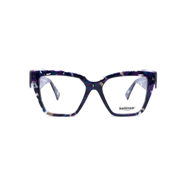 Las gafas ópticas Kelinse KEL7089 destacan por su diseño mariposa de líneas elegantes y su acabado en camuflaje petróleo y morado - petrol purple camo, logrando una estética sofisticada y con gran presencia.