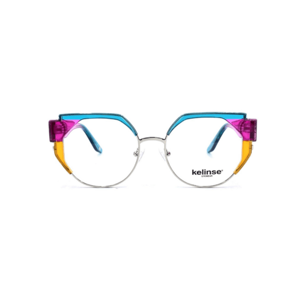 Las gafas ópticas Kelinse KEL6287 destacan por su diseño mariposa de líneas cuidadas y su acabado en rosado naranja y gris - pink orange and petrol, logrando una estética llamativa y con personalidad.