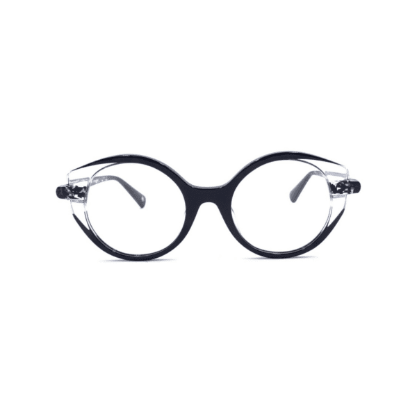 Las Gafas Ópticas Kelinse KEL5001 presentan un diseño redondo femenino en combinación de negro y transparente, creando un equilibrio perfecto entre estilo clásico y moderno.