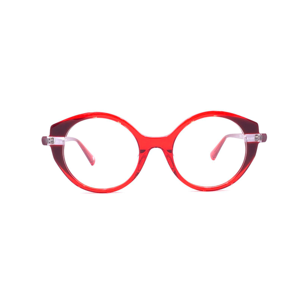 Las Gafas Ópticas Kelinse KEL5005 presentan un diseño redondo femenino en combinación de rojo transparente y detalles burdeo, creando un equilibrio perfecto entre estilo clásico y moderno.