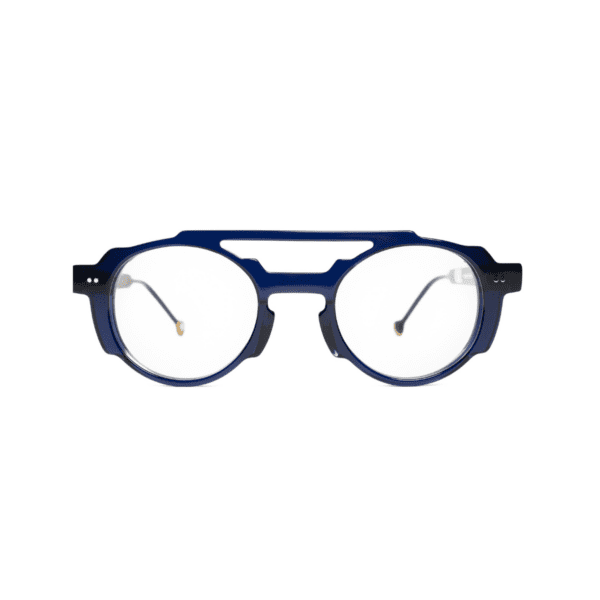 Su acabado azul marino aporta sobriedad y elegancia, mientras que las lentes redondas permiten una fácil adaptación a cualquier graduación.