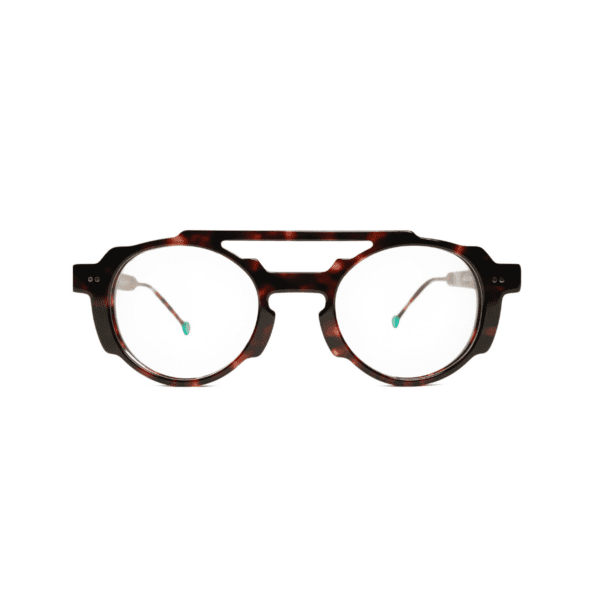 Su acabado carey oscuro aporta sobriedad y elegancia, mientras que las lentes redondas permiten una fácil adaptación a cualquier graduación.