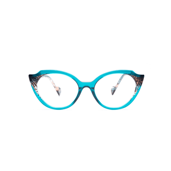 Su fabricación en acetato carey azul con detalle azul transparente garantiza ligereza y resistencia, mientras que su estética aporta un aire elegante que eleva cualquier look diario.