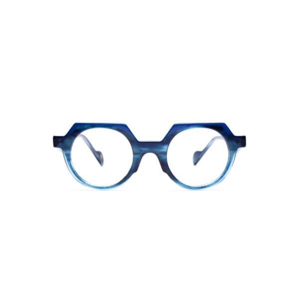 Las gafas ópticas Kelinse KEL2032 combinan un diseño redondo que combina líneas rectas con un acabado carey azul y detalles azul transparente, logrando una estética moderna y diferenciadora.