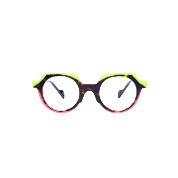 Las gafas ópticas Kelinse KEL2039 combinan un diseño redondo que combina líneas rectas con un acabado havana oscuro rosado y pistacho, logrando una estética moderna y diferenciadora.