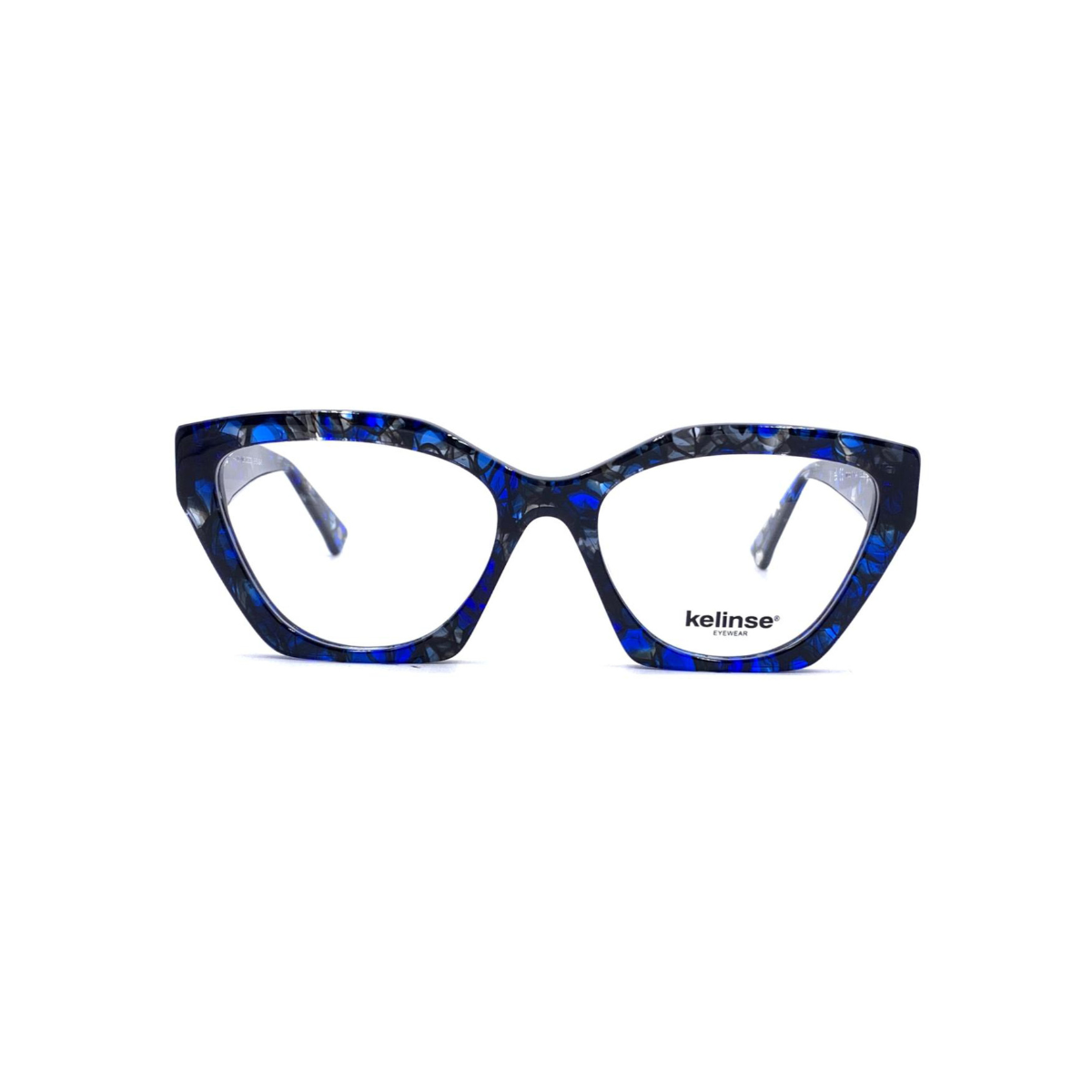 Las gafas ópticas Kelinse KEL6980 destacan por su diseño ojo de gato de líneas elegantes y su acabado en circulos azules - blue circles, logrando una estética llamativa y con identidad única.