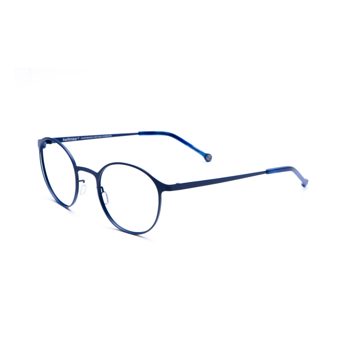 Gafas ópticas Kelinse KEL2311. Combinan un diseño redondo clásico con una montura metálica ligera, ofreciendo una estética equilibrada y contemporánea. El acabado en azul Oxford aporta carácter y diferenciación en el punto de venta, mientras que garantiza comodidad para el uso diario. Un modelo ideal para ópticas y tiendas especializadas que buscan gafas ópticas modernas, versátiles y con personalidad.