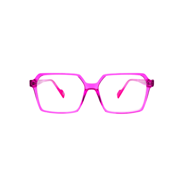 Su montura de acetato rosado claro transparente aporta solidez, estilo y comodidad, mientras que sus proporciones bien estudiadas garantizan un ajuste estable durante todo el día.