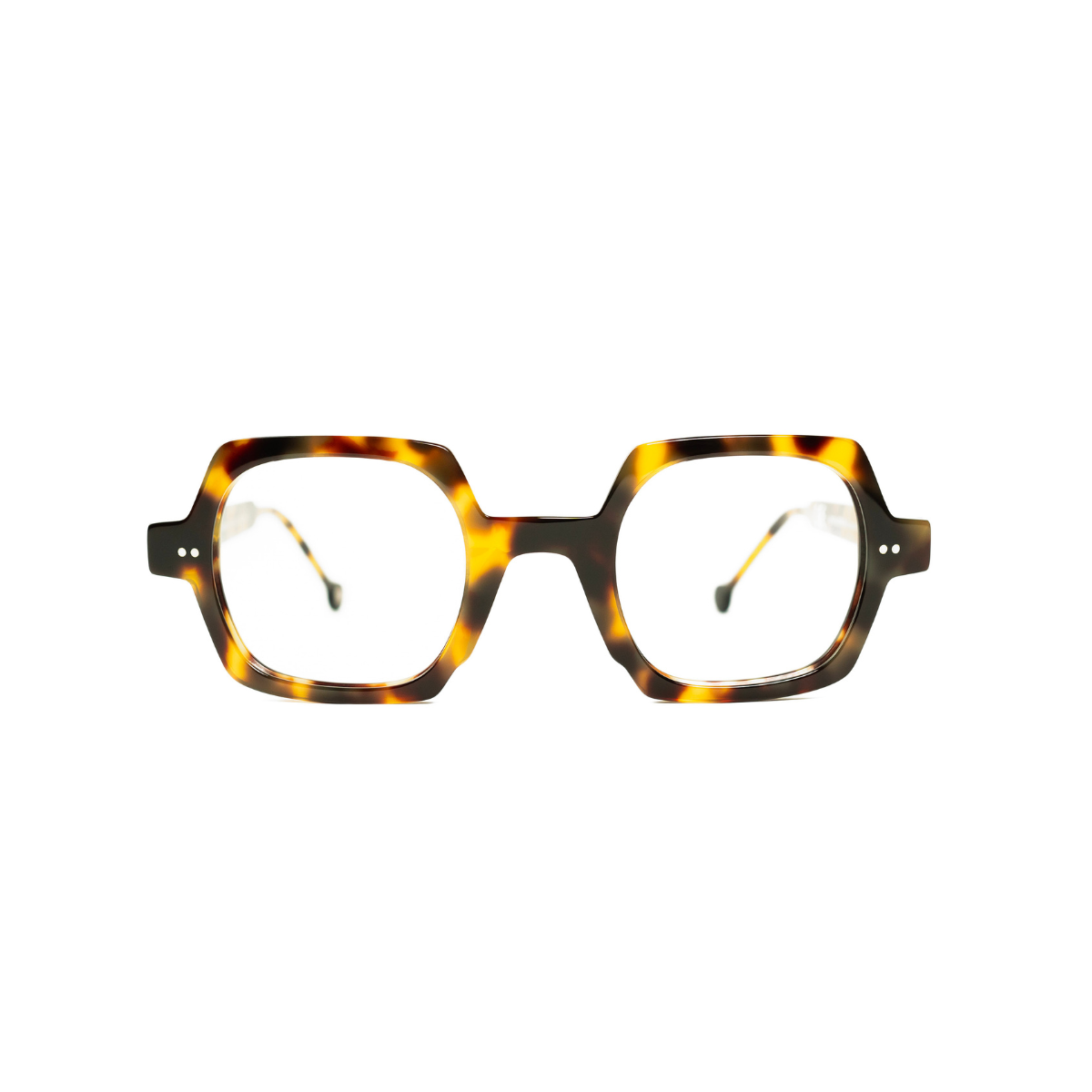 Su acabado carey claro tiene carácter atemporal, mientras que el puente amplio mejora la estabilidad y el confort durante el uso prolongado.