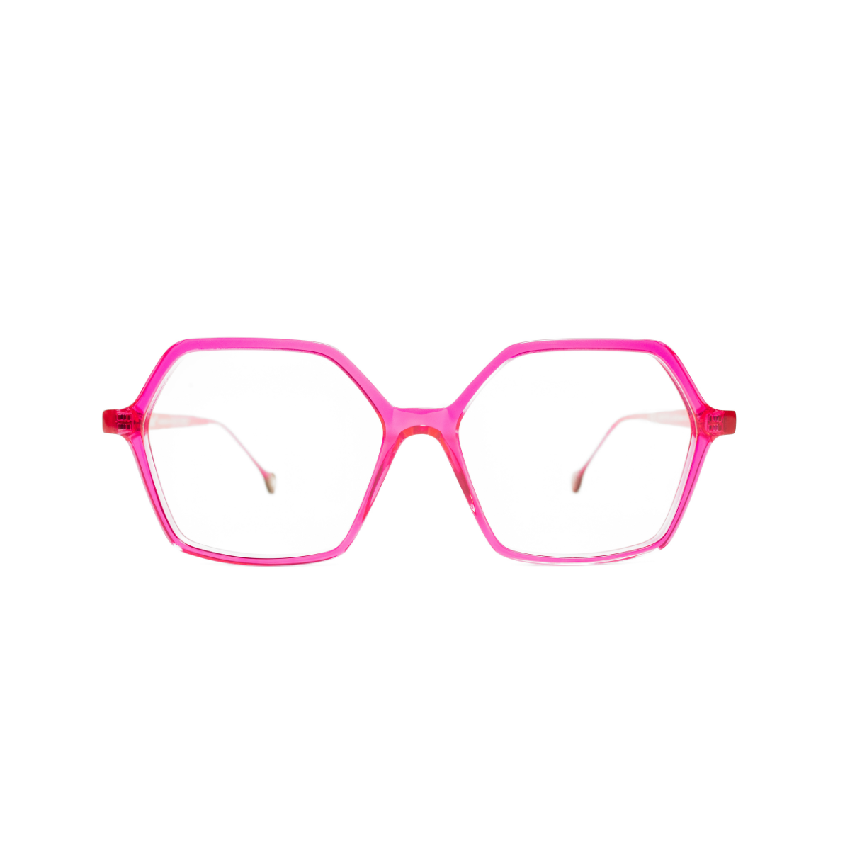 Su estructura de acetato rosado claro transparente aporta solidez y sofisticación, convirtiéndolas en una opción versátil tanto para looks profesionales como más fashion.