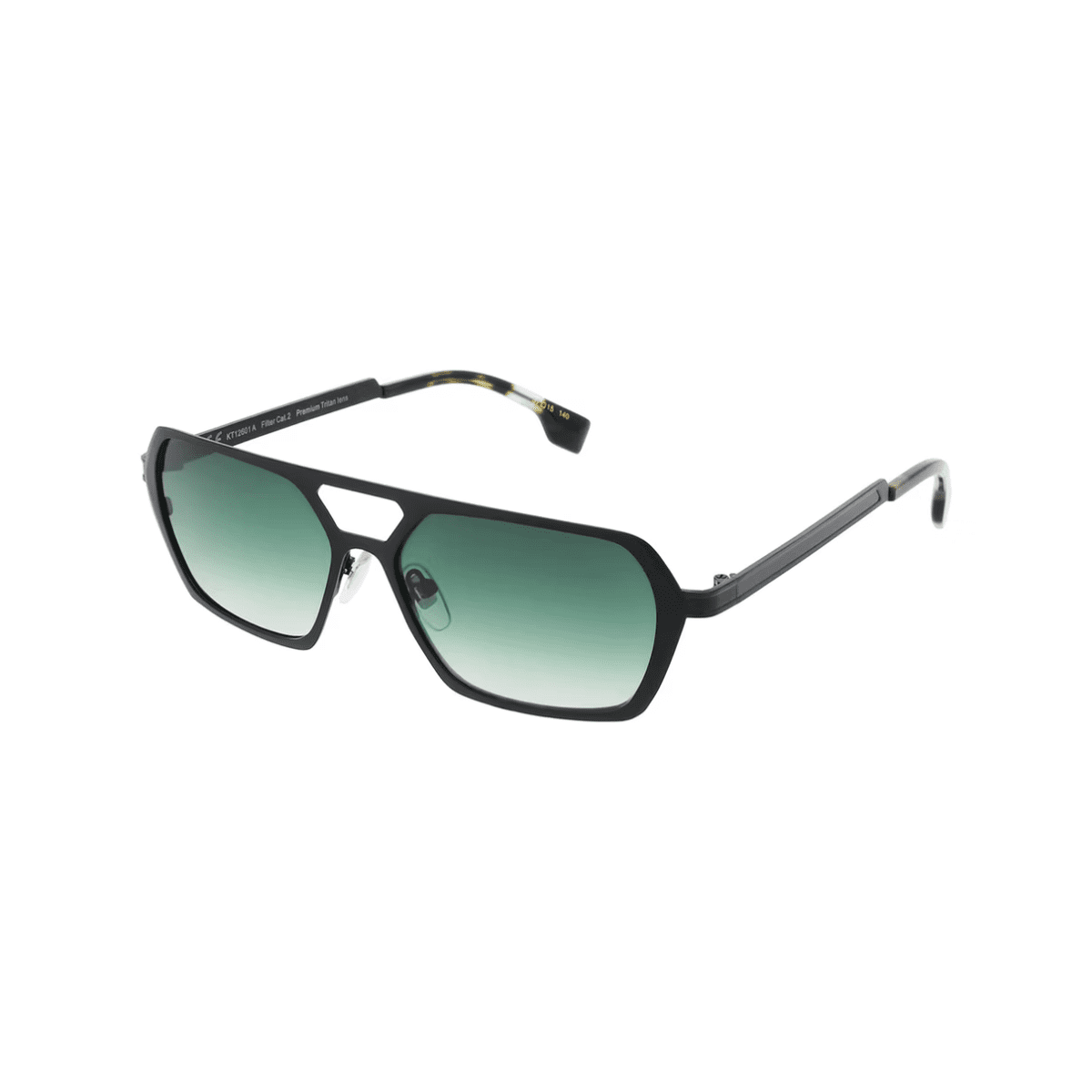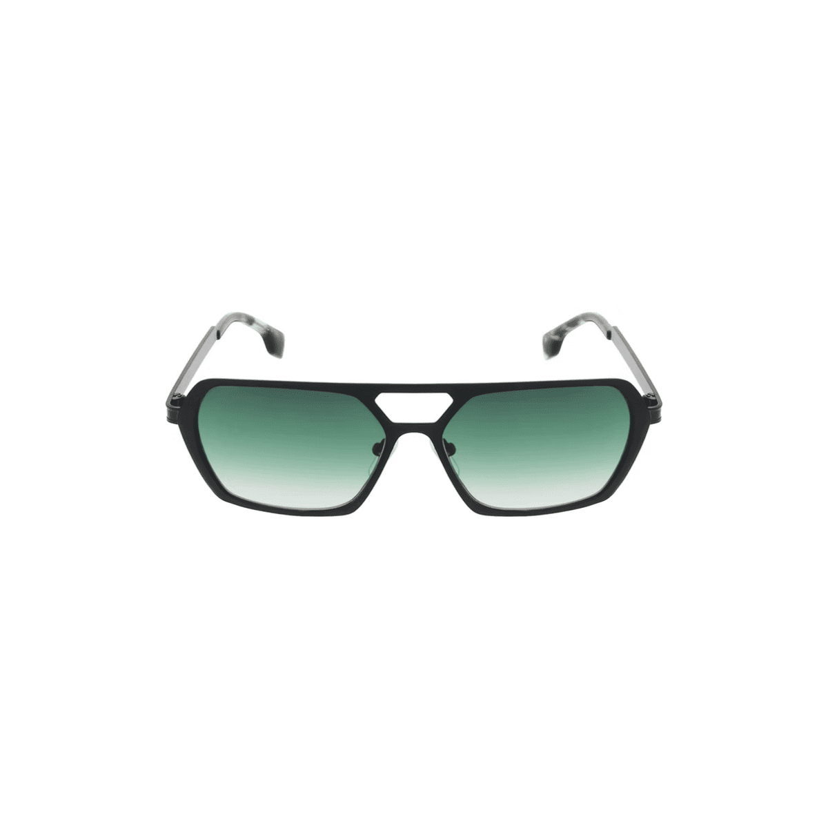 Montura negra mate con lentes verdes degradadas (“Gradient Green”), una combinación fresca y equilibrada que aporta estilo y contraste visual.