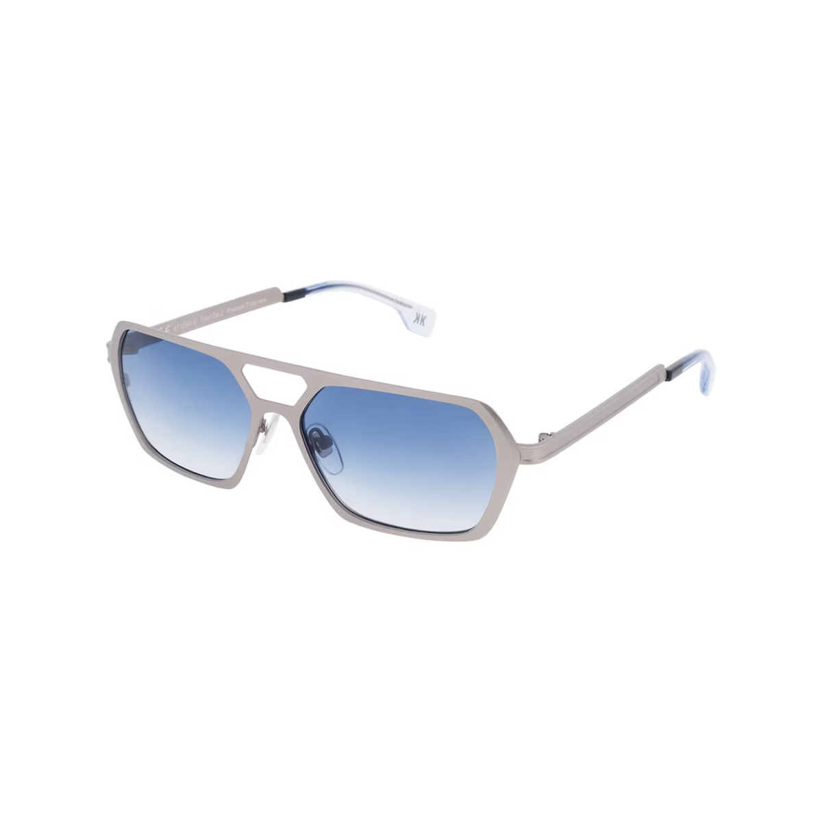 Montura gris mate con lentes azules degradadas (“Gradient Blue”), una combinación fresca y equilibrada que aporta estilo y contraste visual.