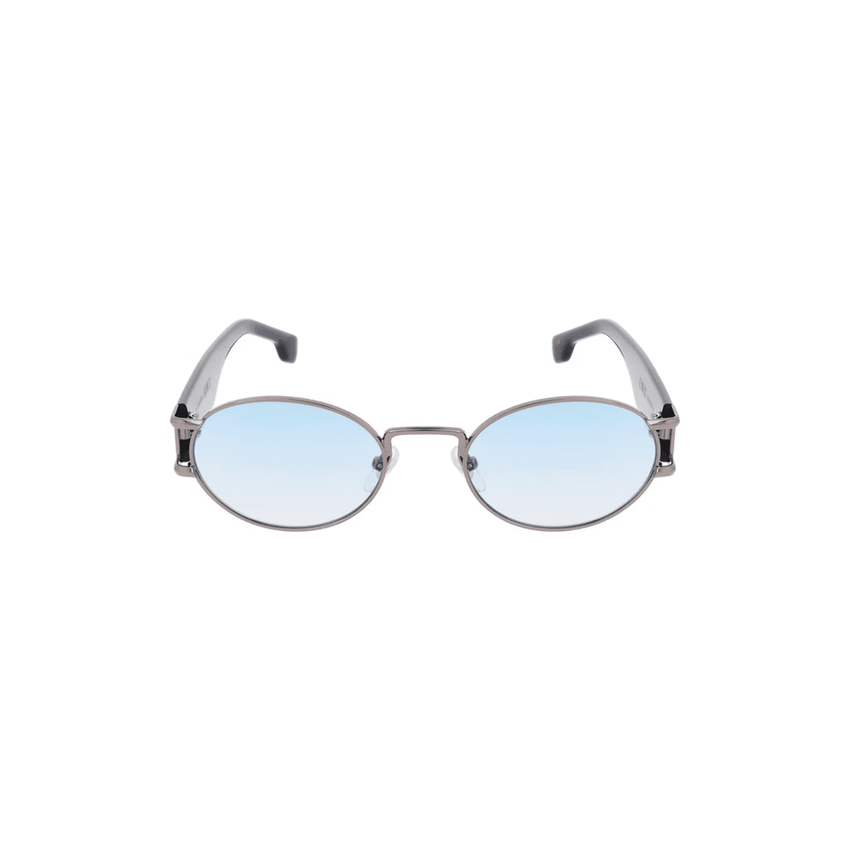 Montura gris plomo con lentes azul rey degradadas (“Gradient Royal Blue”), que aportan un estilo sobrio, natural y elegante.