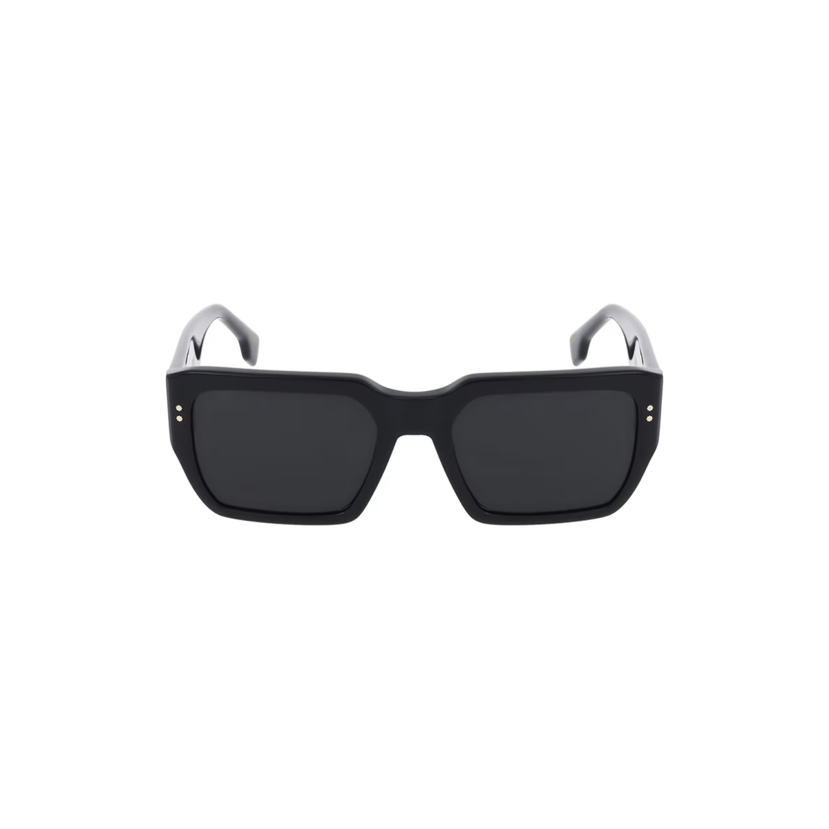 Montura negra brillante con lentes negras sólidas (“Solid Black”), aportando un look clásico y sofisticado.