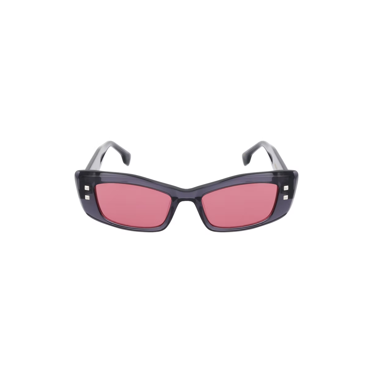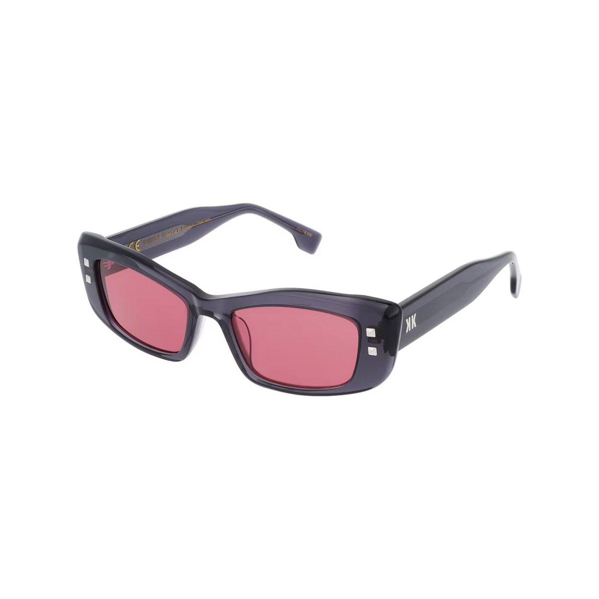 Montura gris plateado transparente y lentes fucsia sólidas (“Solid Fuchsia”), que aportan un look elegante, sobrio y contemporáneo.