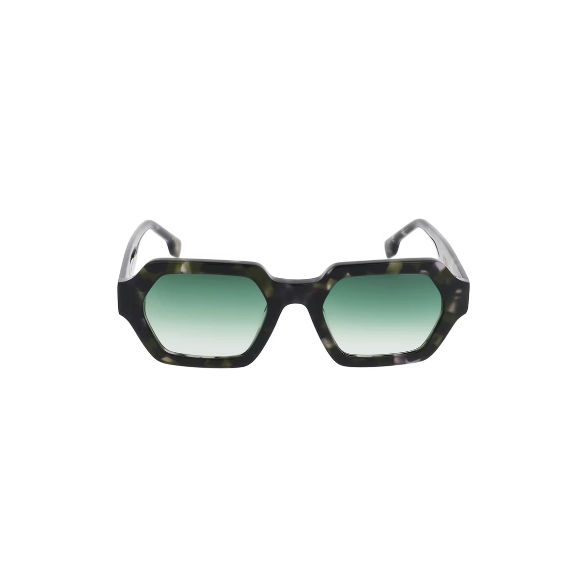Montura carey verde y lentes degradadas verde (“Gradient Green”), que aportan un toque vibrante y sofisticado sin perder elegancia.