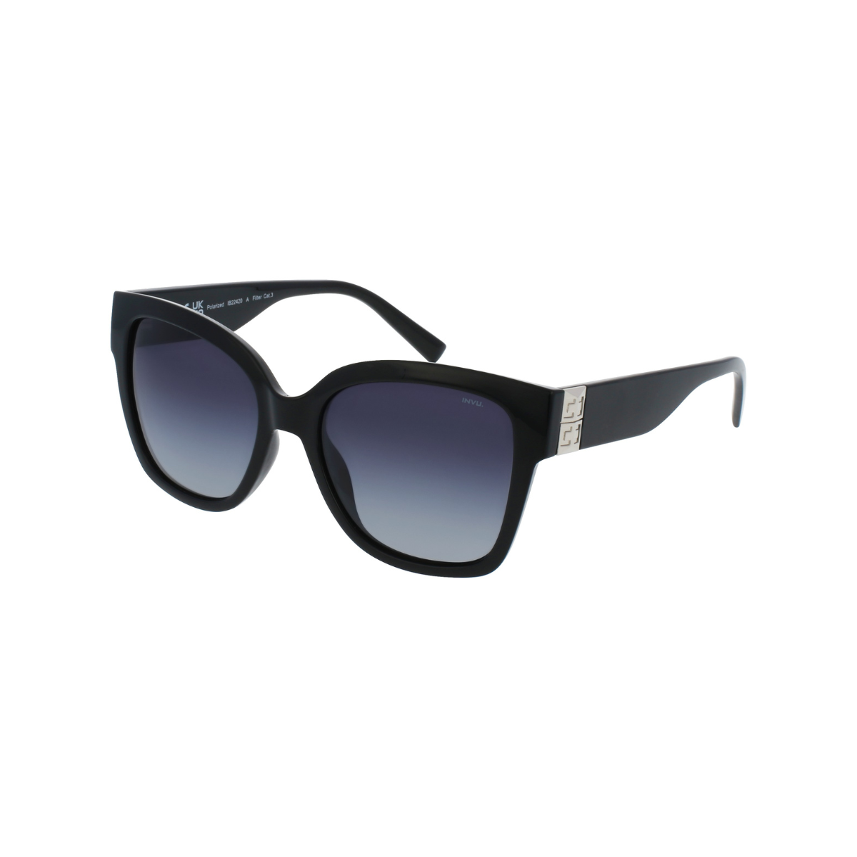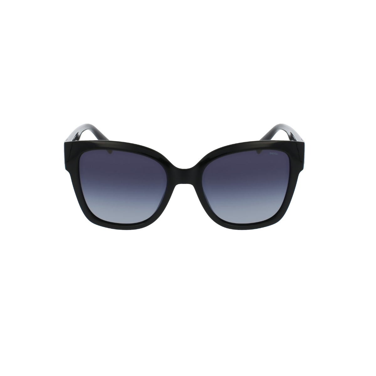Gafas de sol femeninas INVU IB22420A con montura de acetato negro y una elegante forma mariposa, diseñada para aportar estilo y personalidad.