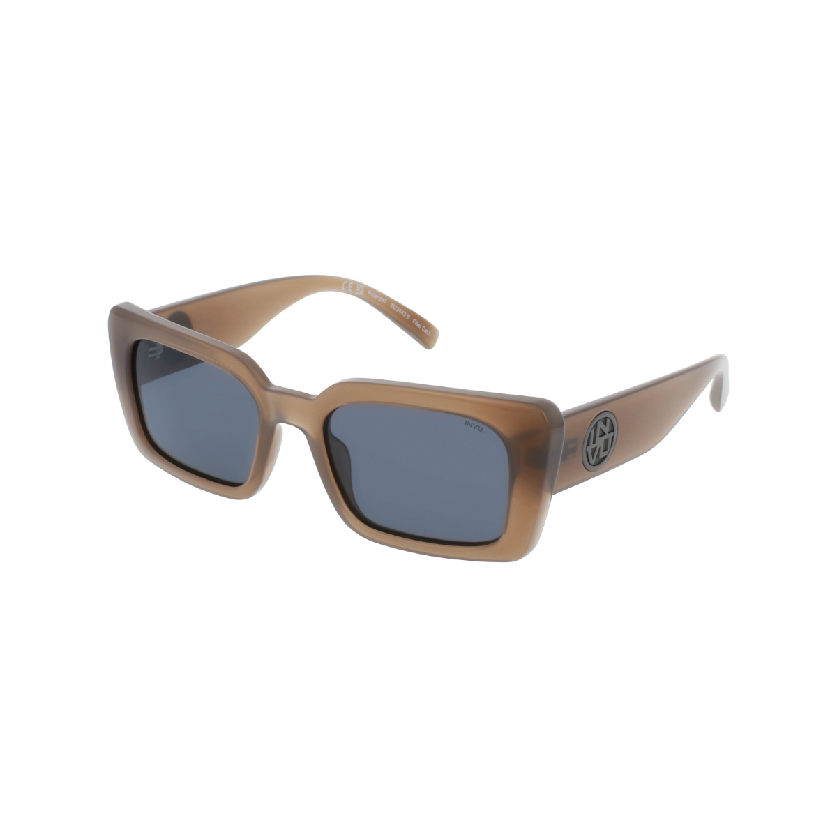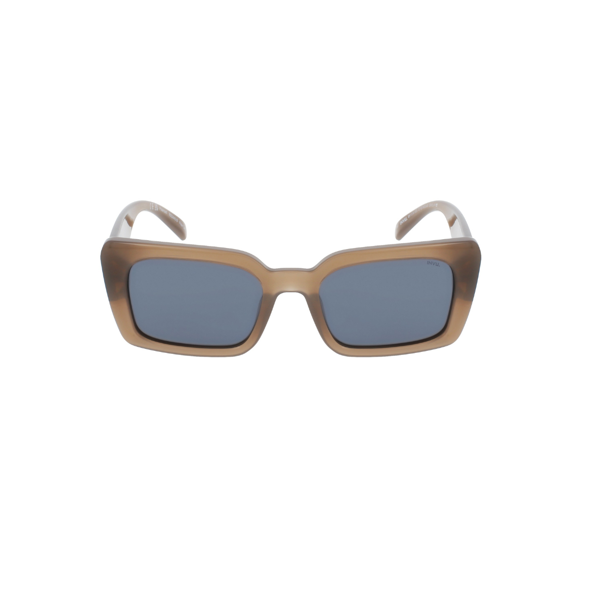 INVU IB22443B en acetato marrón translúcido, sobrio y actual, pensado para quienes buscan unas gafas de sol cómodas y con estética limpia.