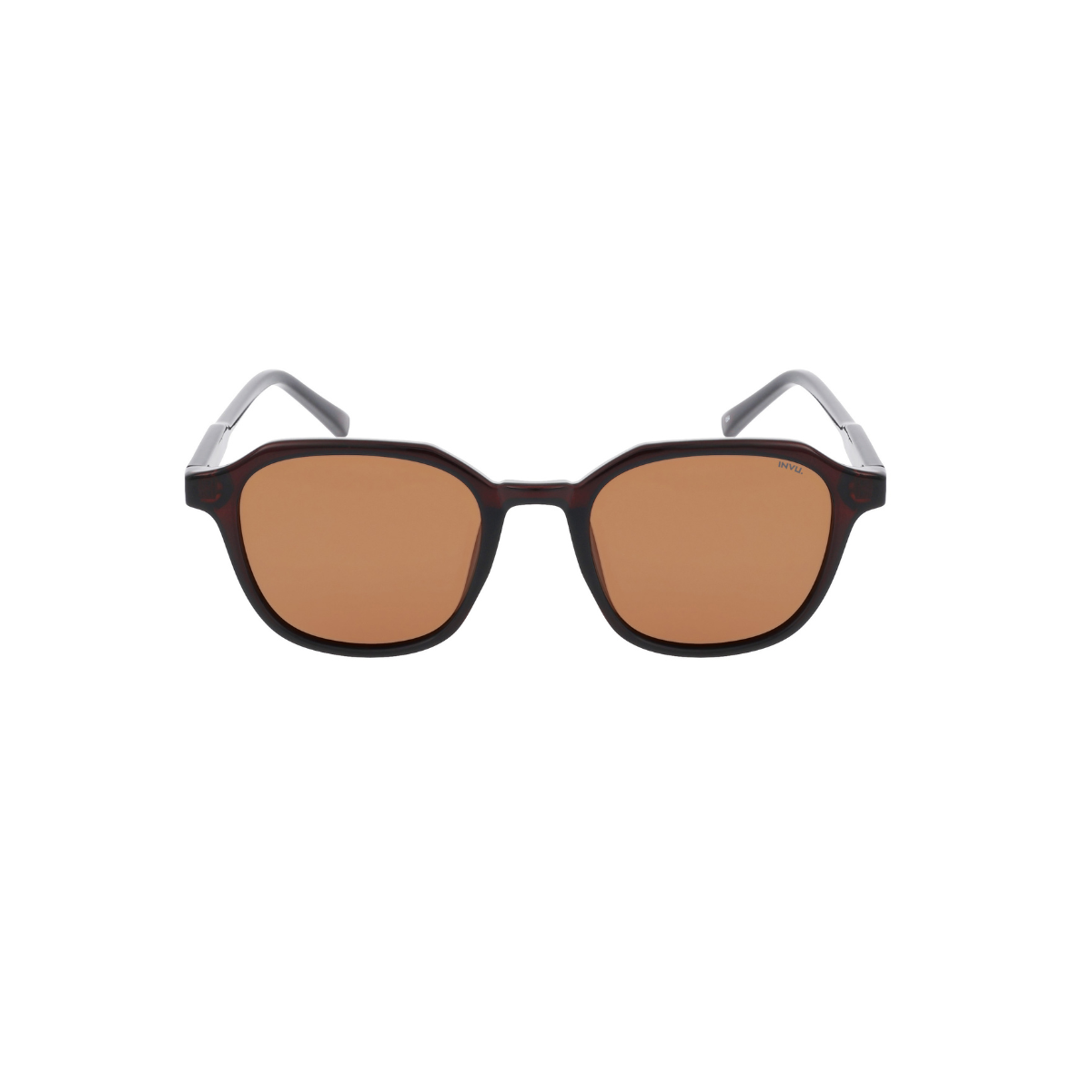 Las Gafas de Sol INVU IB22535C presentan un diseño poligonal unisex en marrón transparente, combinando estilo moderno y funcionalidad para el uso diario.