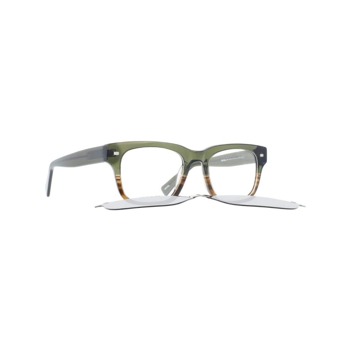 Diseño clásico y versátil en color verde con marrón (“Green on Brown”), ideal para clientes que buscan una montura moderna pero discreta.
