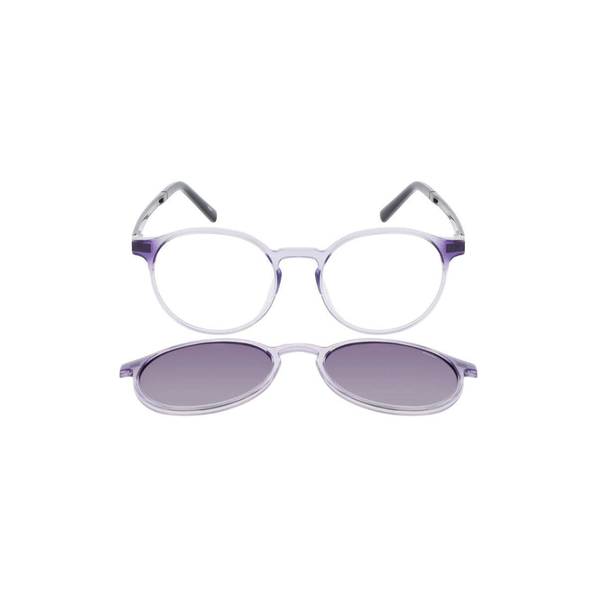 Diseño masculino con estética moderna y translúcida, combinando lila con detalles en negro.