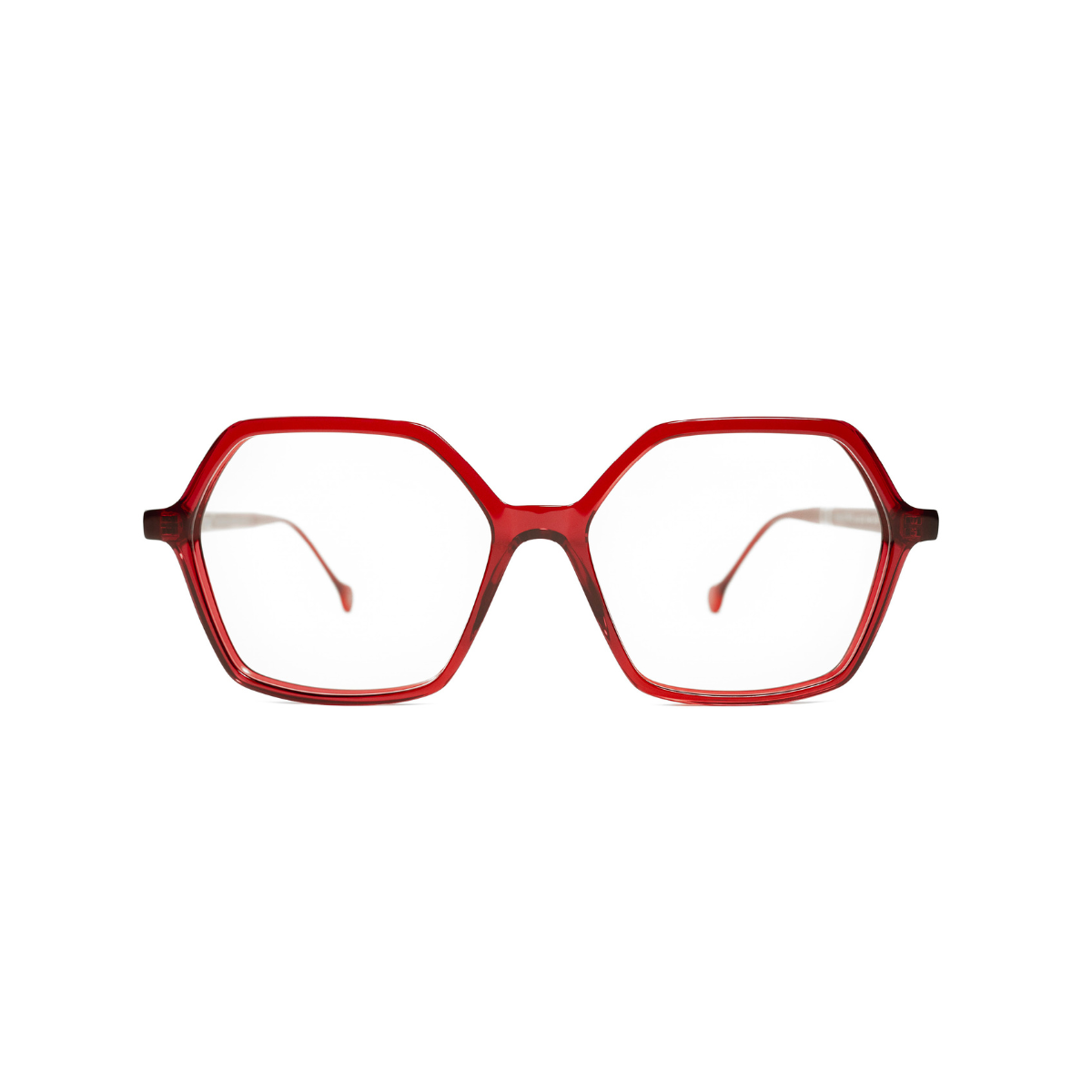 Acabado rojo oscuro transparente, elegante y atemporal, fácil de integrar en colecciones ópticas contemporáneas.