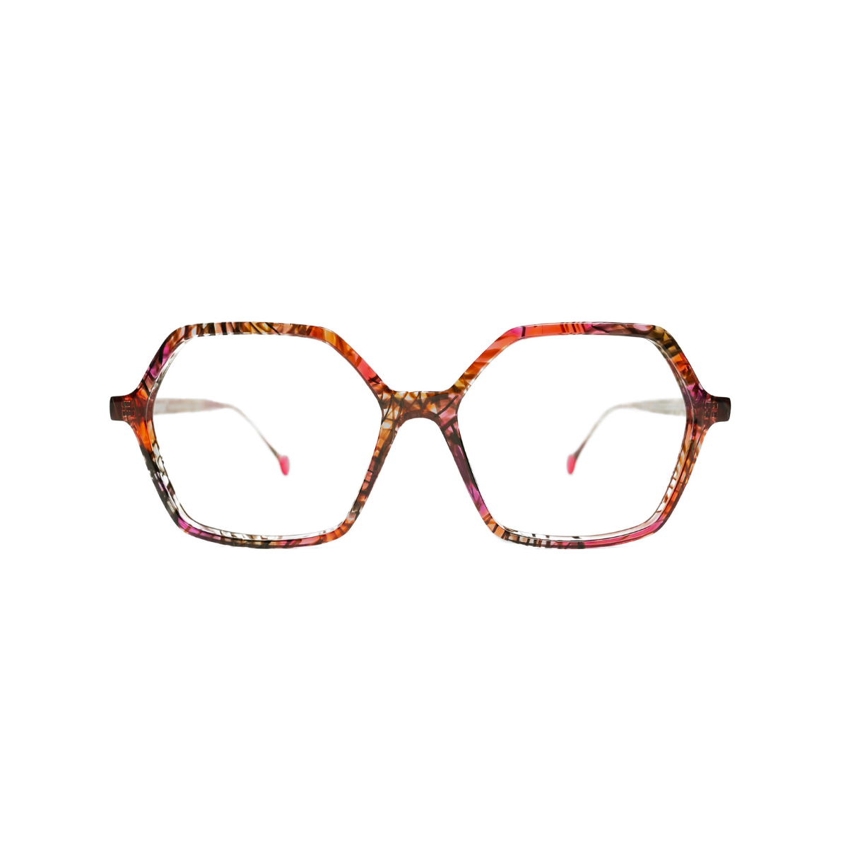 Diseño poligonal, moderno y sofisticado, ideal para clientas que buscan una montura diferente y con carácter.