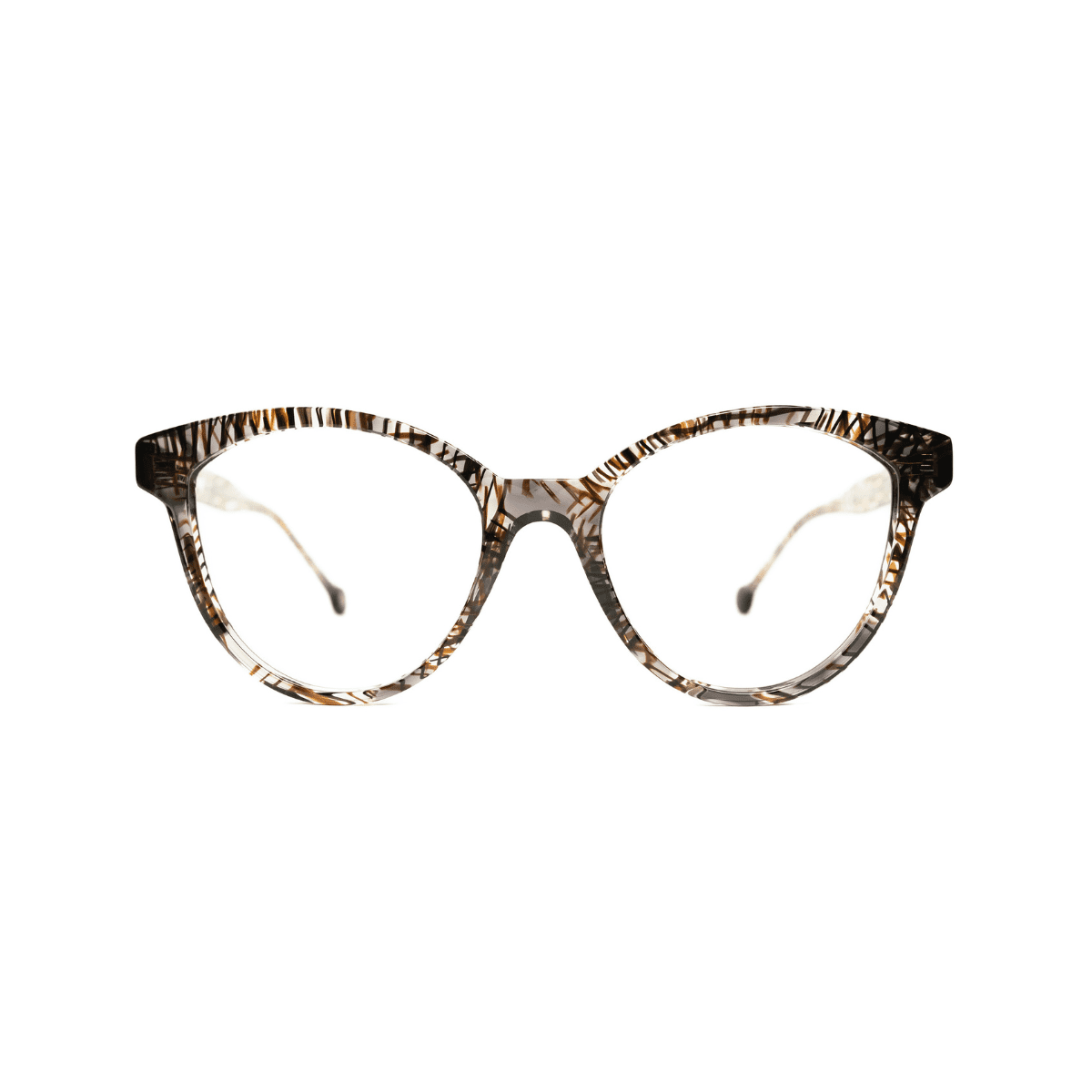 Acabado marrón transparente y líneas negras, elegante y atemporal, fácil de recomendar para distintos estilos y edades.