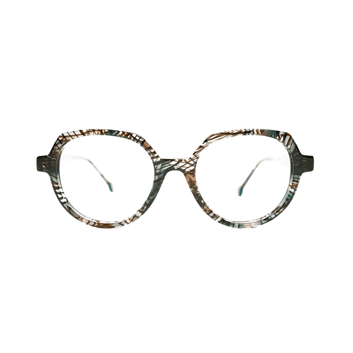 Acabado verde transparente y líneas marrón, clásico y versátil, fácil de integrar en cualquier colección óptica.