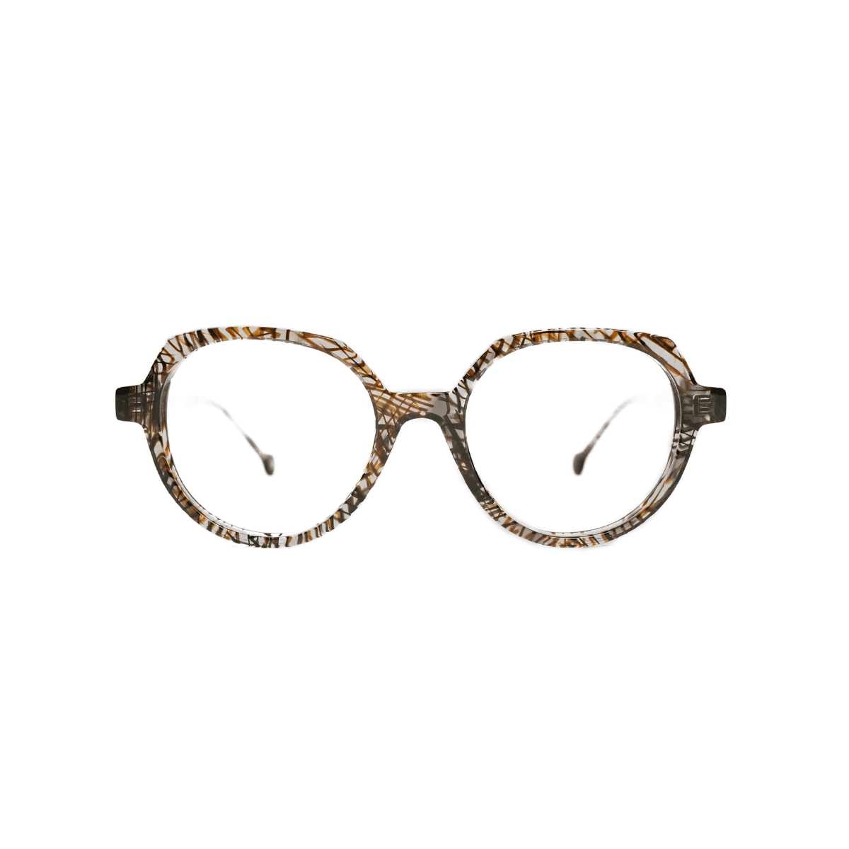 Acabado marrón transparente y líneas negras, clásico y versátil, fácil de integrar en cualquier colección óptica.