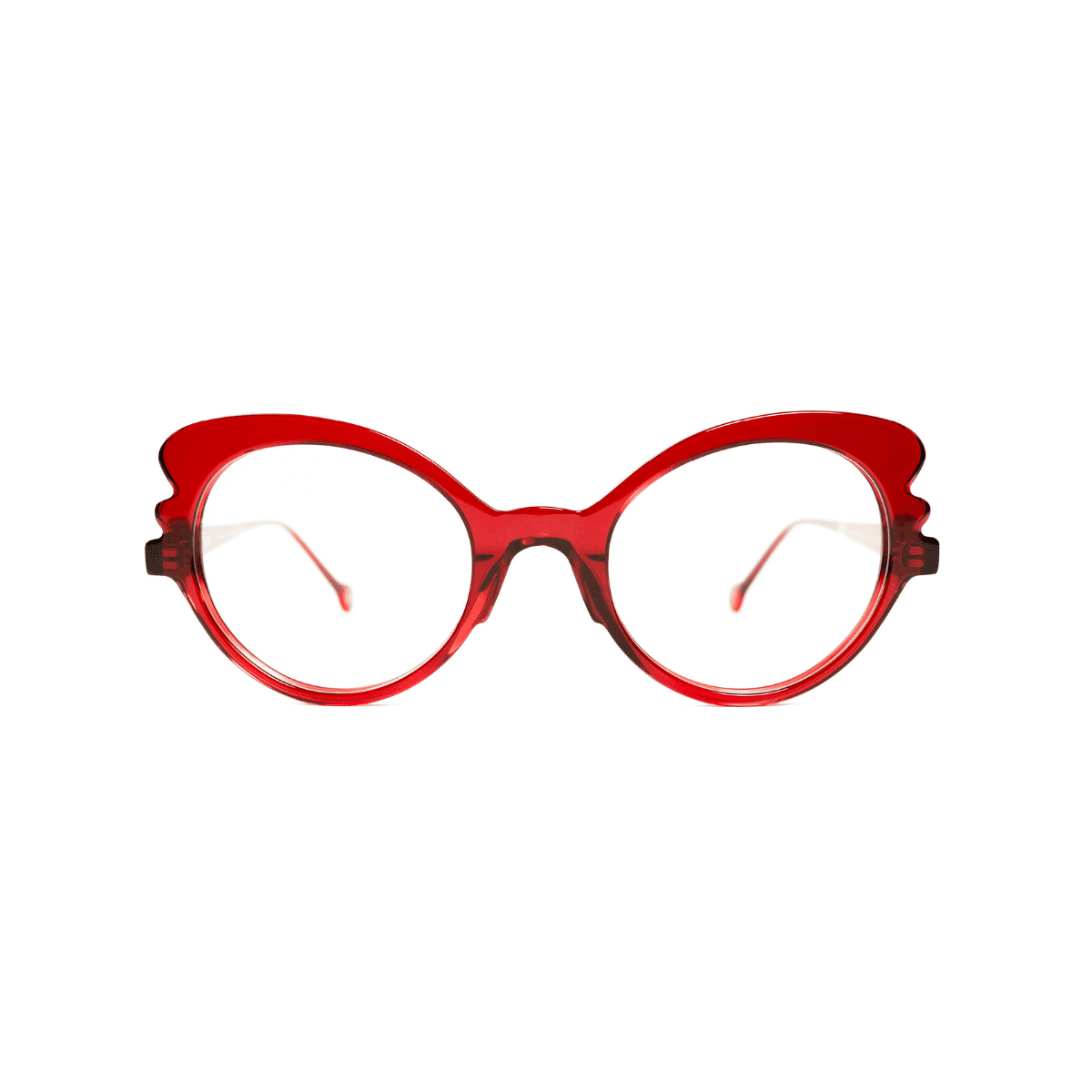 Acabado rojo oscuro transparente, elegante y atemporal, muy valorado en óptica por su alta rotación.