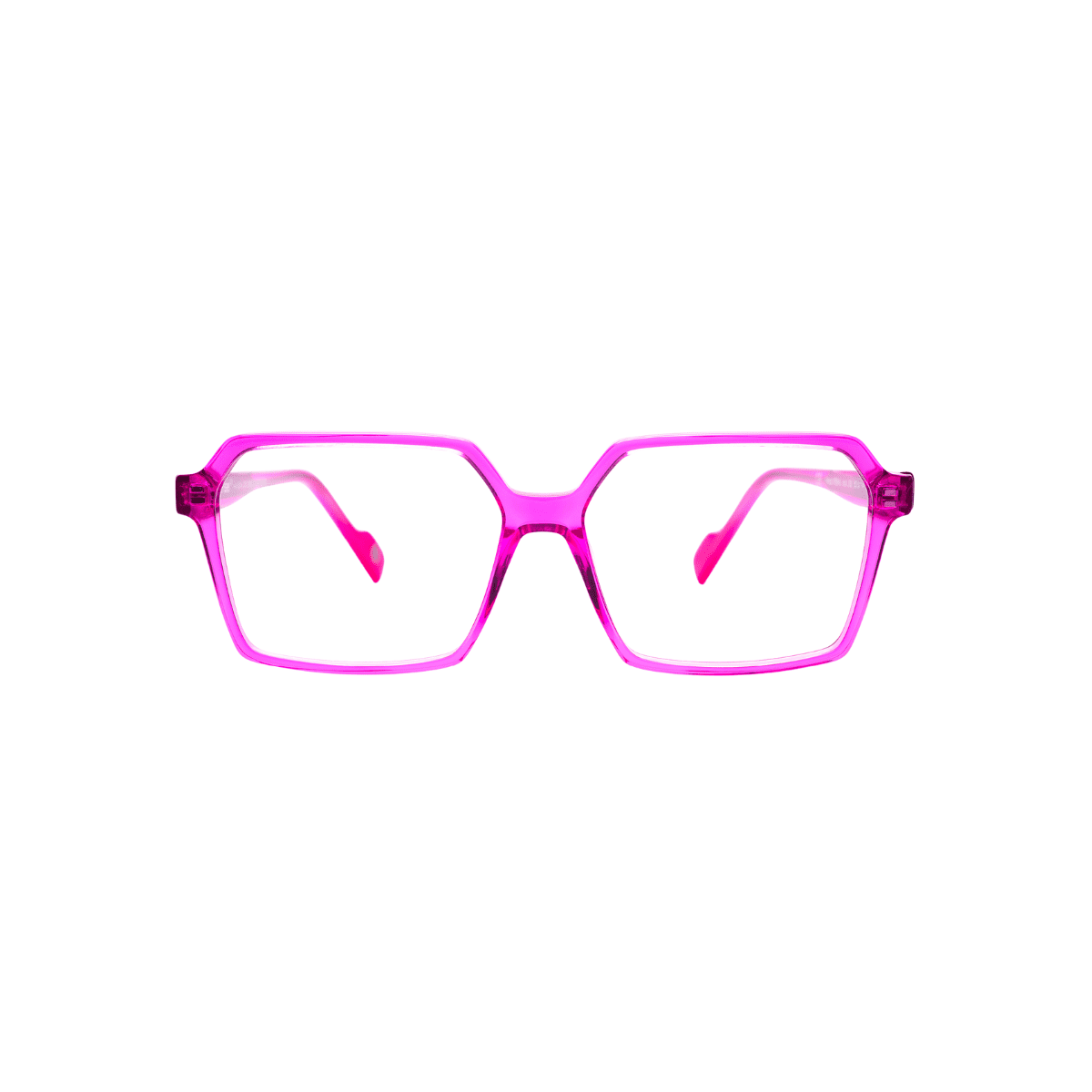 Su montura de acetato rosado claro transparente aporta solidez, estilo y comodidad, mientras que sus proporciones bien estudiadas garantizan un ajuste estable durante todo el día.