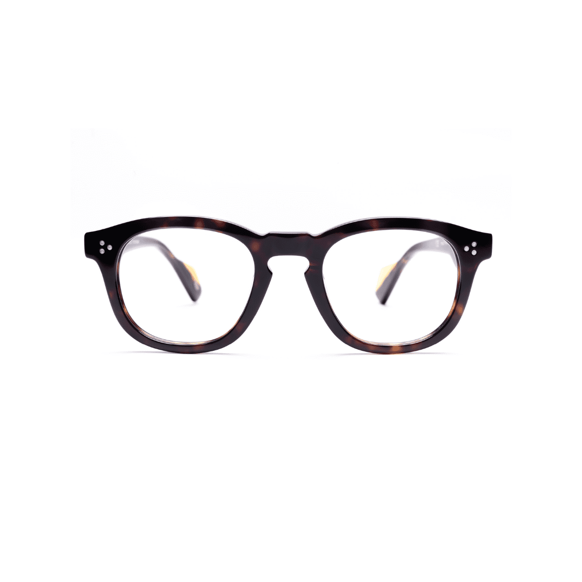 Su montura de acetato carey oscuro con puntas amarillas aporta solidez, ligereza y comodidad, mientras que su estética minimalista las convierte en una opción muy versátil para distintos perfiles de cliente.