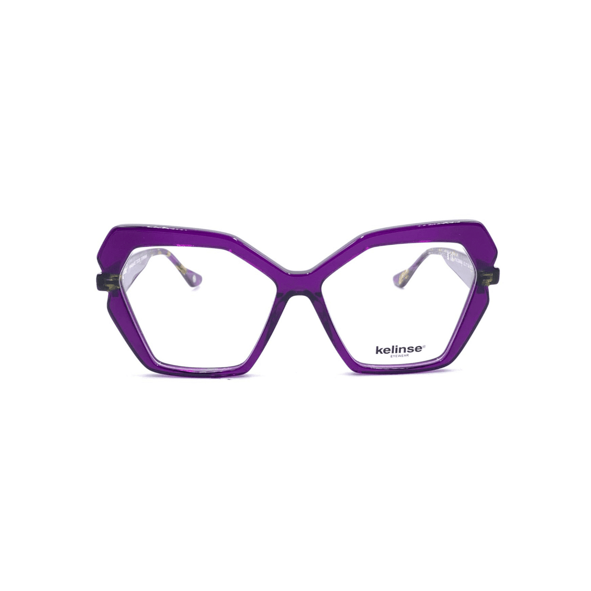 Las gafas ópticas Kelinse KEL7134 destacan por su diseño poligonal de líneas elegantes y su acabado en morado transparente – tran purple, logrando una estética moderna y con gran presencia.